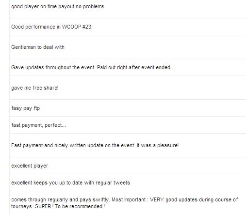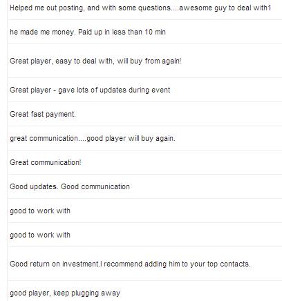 7/13/13. I found reviews of my play and how other investors felt I treated them in terms of play and communication. See below: I received over 800 positive reviews from investors from overseas and not one negative!! That site doesn't accept online players from the USA or I'd still be there.